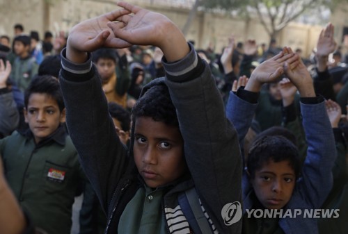 Yemeni students do morning exercises at a public school in Sana'a, Yemen, 16 December 2020 (Issued 19 December 2020). According to reports, some five million Yemeni students attend school across the war-torn country while over half a million school-age children do not get to go to school since the escalating fighting broke out in 2015. EPA/YAHYA ARHAB