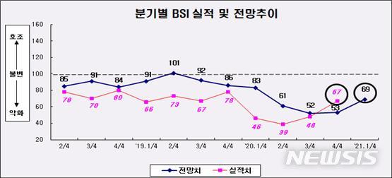 2021년 1분기 부산 제조업 경기전망지수 69