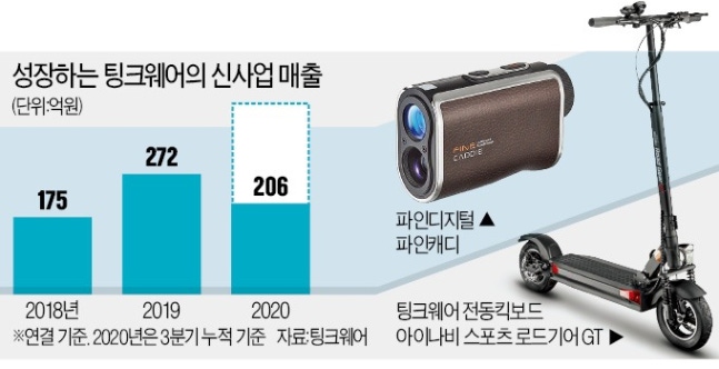 이 같은 팅크웨어의 변신은 올 들어 안착했다는 평가가 나온다. 이들 신사업군은 올해 3분기까지 매출 266억원을 올리며 회사 전체 매출(3분기 누적 1414억원)의 18.8%를 차지할 정도로 성장했다.