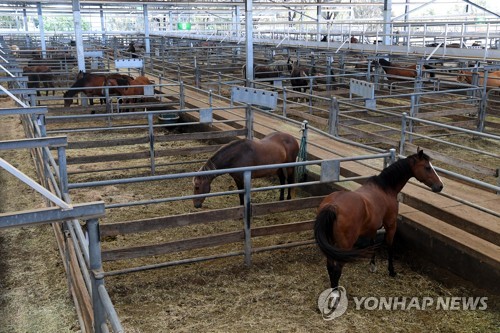 A general view of horses within the Wangaratta sale yards, Victoria, Australia, 11 January 2020. Horses and live stock have been evacuated to the live stock exchange from the North Eastern Alpine areas due to threat of bushfires. EPA/JAMES ROSS AUSTRALIA AND NEW ZEALAND OUT