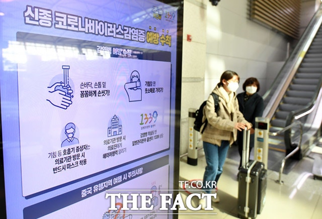 신종 코로나바이러스 위기 경보가 '경계'로 격상된 가운데 28일 오후 인천국제공항 제1터미널 출국장 안내판에 신종 코로나바이러스와 관련한 안내 문구가 나오고 있다. /인천국제공항=임세준 기자