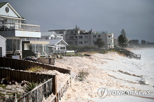 Sea foam brought by waves approach on beach front houses after heavy rain and storms at Collaroy in Sydney's Northern Beaches, Australia, 10 February 2020. Waterlogged parts of NSW are suffering their worst floods in years with heavy rains and damaging winds forecast to again lash the state. EPA/JOEL CARRETT AUSTRALIA AND NEW ZEALAND OUT