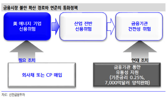 > 신한금융투자 "연준 조치, 신용 위험 해소엔 역부족…직접개입 필요"[이데일리 이슬기 기자] 미국이 제로금리 시대를 열고 양적완화까지 시사했지만 시장 반응은 뜨뜨미지근 하다. 증권가에선 이러한 대책들이 현재 금융시장을 불안하게 만드는 신용 위험 해소엔 역부족이라며 양적완화 대상에 회사채·기업어음(CP) 등 신용채권 매입이 이뤄져야한다고 짚었다.