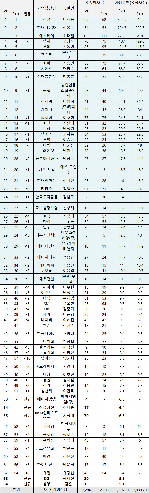공정위는 IMM인베스트먼트를 포함해 자산 총액 5조원 이상인 64개 기업집단을 공시대상기업집단으로 지정했다고 3일 밝혔다. IMM인베스트먼트 외에 HMM, 장금상선, KG, 삼양그룹도 자산 5조원을 넘겨 공시대상기업집단 명단에 이름을 올렸다.