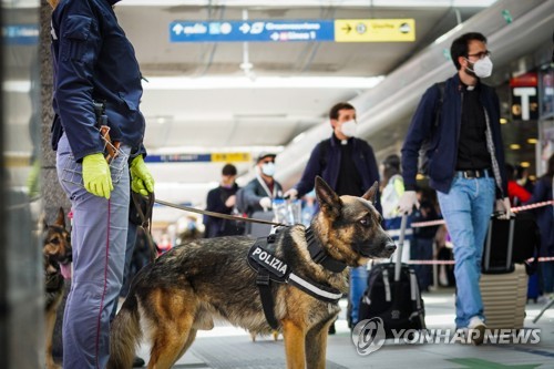 Police check travellers at the central station during the Phase 2 of the Covid-19 emergency in Naples, Italy, 04 May 2020. The Italian government gradually lifts the lockdown restrictions that were implemented to stem the widespread of the Sars-Cov-2 coronavirus causing the Covid-19 disease. EPA/CESARE ABBATE