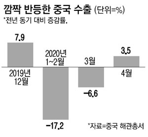 7일 중국 세관 당국인 해관총서에 따르면 4월 중국 수출은 2002억8000만달러로 전년 동기 대비 3.5% 증가했다. 앞서 로이터통신이 집계한 시장 전망치(-15.7%)와 3월 수치(-6.6%)를 크게 웃돌았다. 중국 내 코로나19 확산 추세가 가장 극심했던 1~2월에는 수출 증가율이 -17.2%까지 떨어진 바 있다.
