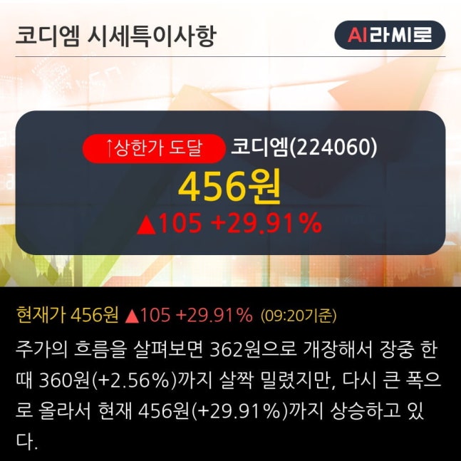 [그래프]코디엠 차트 분석◆ 기업개요코디엠은 반도체 및 디스플레이 제조장비 업체로 알려져 있다.