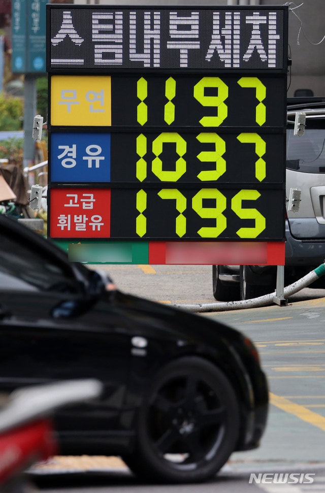 [서울=뉴시스] 이영환 기자 = 주유소 휘발유 가격이 16주 연속 하락중인 17일 오전 서울 성북구의 한 주유소에서 휘발유가 1197원, 경유가 1037원에 판매되고 있다. 2020.05.17.