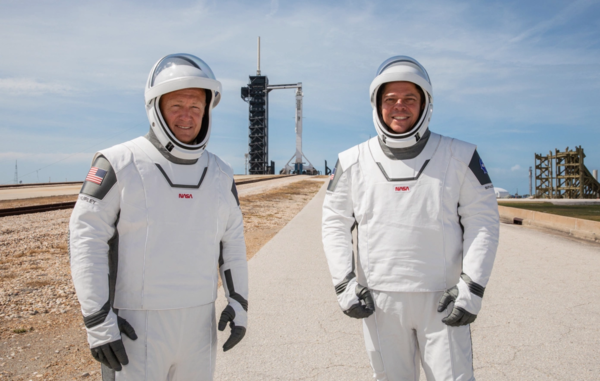 이날 유인 우주선 '크루 드래곤'에 탑승한 미 항공우주국(NASA) 소속 우주비행사 더글러스 헐리와 로버트 벤켄은 스페이스X가 직접 제작한 우주복을 입어 화제가 됐다.