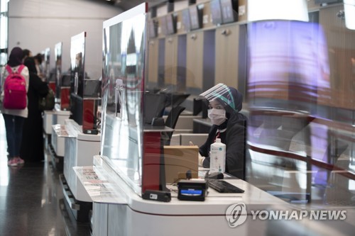 A Turkish Airlines officer wearing face mask waits for passengers at check in desk after resuming domestic flights in Istanbul Airport, Istanbul, Turkey 01 June 2020. Turkey re-opens restaurants, cafes, parks, beaches, lifts inter-city travel bans as the country eases coronavirus restrictions measures amid the ongoing pandemic of the COVID-19 disease caused by the SARS-CoV-2 coronavirus on 01 June. EPA/TOLGA BOZOGLU
