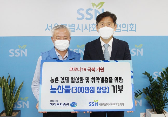 하이투자증권은 DGB사회공헌재단을 통해 준비한 후원금 300만원으로 경북 문경 영농조합에서 생산한 건강식재료인 표고버섯 분말 300개를 구매해 서울특별시사회복지협의회에 전달했다. 서울특별시사회복지협의회에서는 영등포 내 후원이 필요한 기관 및 단체를 파악해 하이투자증권이 기부한 품목 전량을 배부할 예정이다.