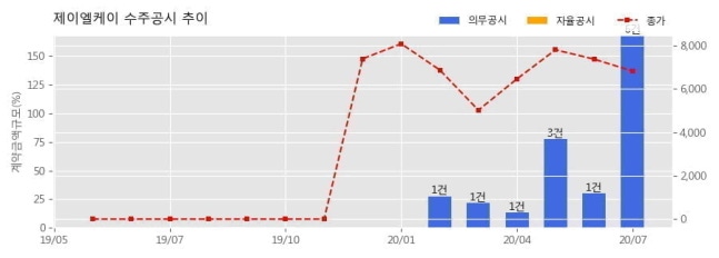 계약 상대방은 한국데이터산업진흥원,(주)규리아이고, 계약금액은 0.6억원 규모로 최근 제이엘케이 매출액 2.3억원 대비 약 27.7% 수준이다. 이번 계약의 기간은 2020년 07월 01일 부터 2020년 11월 27일까지로 약 4개월이다.