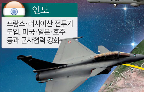 중국과 국경 유혈사태를 빚은 인도도 보조를 맞추는 모양새다. 타임스오브인디아는 “‘파이브 아이스’에 참여해 대중국 정보를 공유할 필요가 있다”고 주장했다. 파이브 아이스는 미국·영국·캐나다·호주·뉴질랜드가 참여하는 정보동맹이다. 인도는 미국의 동맹국인 일본, 호주 등과도 군사협력을 강화하는 한편 프랑스산 라팔 전투기와 러시아산 수호이 전투기 등을 조기에 도입할 태세다.