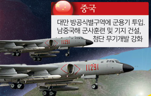 미 공군도 가세했다. B-52H 전략폭격기가 4일 루이지애나주 박스데일 공군기지를 이륙해 28시간 동안 서태평양 일대를 비행하고 괌 앤더슨 공군기지에 도착했다. B-1B, B-2와 더불어 미국의 3대 전략폭격기로 꼽히는 B-52H가 미 본토에서 1만㎞ 이상 떨어진 괌으로 비행한 것은 미군의 장거리 타격 능력을 중국에 과시하는 의미가 담긴 것으로 풀이된다.