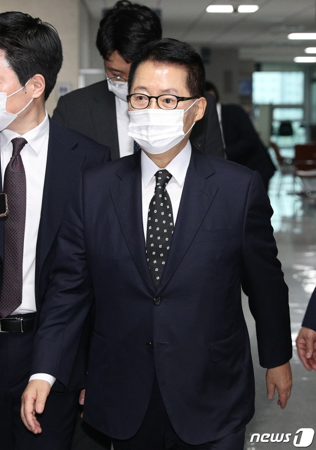 (서울=뉴스1) 신웅수 기자 = 박지원 국가정보원장이 4일 오전 서울 여의도 국회 의원회관에서 최강욱 열린민주당 대표를 만난 후 의원실을 나서고 있다. 2020.8.4/뉴스1