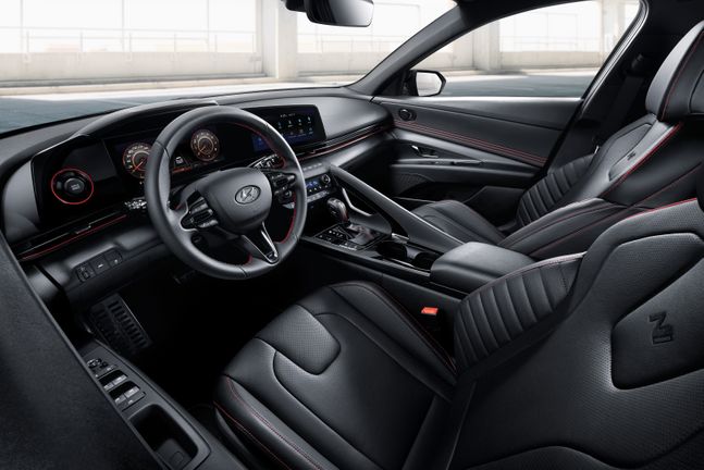 내장은 레드 스티치 가죽 시트, 가죽 스티어링 휠, 기어노브 등 N 라인 전용 디자인과 메탈 페달 및 풋레스트(발 받침대) 등이 적용돼 스포티한 감성이 극대화됐다.