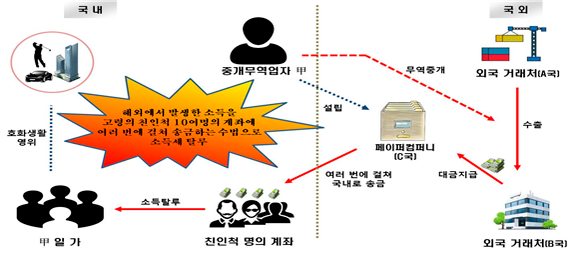 해외에서 발생한 소득을 고령의 친인척 10여명의 계좌에 여러번에 걸쳐 송금하는 수법으로 소득세를 탈루한 사례도 나왔다.