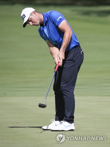 Viktor Hovland of Norway putts on the 15th green during the first round of the 2020 BMW Championship held at the Olympia Fields Country Club in Olympia Fields, Illinois, USA, 27 August 2020. EPA/TANNEN MAURY