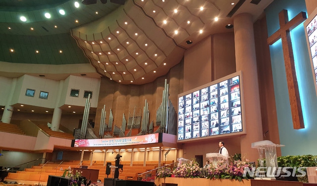 [서울=뉴시스] 박미소 기자 = 신종 코로나바이러스 감염증(코로나19) 확산을 막기 위해 수도권 지역의 교회가 비대면 예배만 허용된 가운데 13일 오전 서울 여의도순복음교회 주일예배가 '줌(zoom)' 화상예배로 진행되고 있다. (사진=여의도순복음교회 제공)2020.09.13. photo@newsis.com◇고위험시설 11종 집합금지…종교시설 소모임·식사도 금지거리두기 2단계에선 실내 50인, 실외 100인 이상 모임이 금지되며, 2.5단계 때와 마찬가지로 스포츠 행사는 무관중 경기로 진행하고, 공공 다중시설 운영도 중단된다.