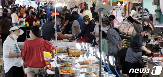 >  (세종=뉴스1) 장수영 기자 = 민속최대의 명절 추석을 일주일 앞둔 24일 세종시 조치원읍에서 4일과 9일에 열리는 세종전통시장을 찾은 시민들이 장을 보고 있다. 시장 상인은 코로나19 영향으로 작년 추석이나 올해 설보다는 손님이 적지만 추석 연휴을 앞두고 시장을 찾는 시민들이 늘었다고 말했다. 2020.9.24/뉴스1 presy@news1.kr ▶ 네이버 메인에서 [뉴스1] 구독하기!▶ 뉴스1 바로가기 ▶ 코로나19 뉴스 © 뉴스1코리아( news1.kr), 무단 전재 및 재배포 금지