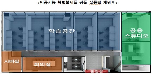 AI 불법 복제품 판독 실증랩은 총 면적 288㎡의 규모로, 제품 디자인을 모방한 위조상품을 식별할 수 있도록 진성상품의 사진, 도면 등 관련 데이터를 가공·학습할 수 있는 시설과 장비를 제공한다.