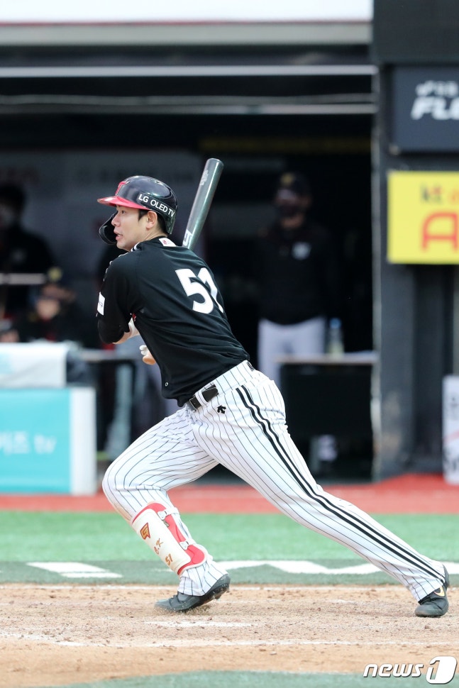 >  (수원=뉴스1) 조태형 기자 = 4일 오후 경기도 수원시 장안구 kt위즈파크에서 열린 2020 프로야구 신한은행 SOL KBO리그 kt위즈와 LG트윈스의 경기 8회초 2사 만루 상황, LG 홍창기가 적시타를 치고 있다. 2020.10.4/뉴스1 phototom@news1.kr ▶ 네이버 메인에서 [뉴스1] 구독하기!▶ 뉴스1 바로가기 ▶ 코로나19 뉴스 © 뉴스1코리아( news1.kr), 무단 전재 및 재배포 금지