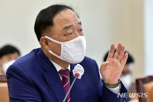 [서울=뉴시스]전진환 기자 = 8일 국회 기획재정위원회 기재부 조세정책에 대한 국정감사에서 홍남기 경제부총리가 의원 질의에 답변을 하고 있다 (공동취재사진) 2020.10.08.