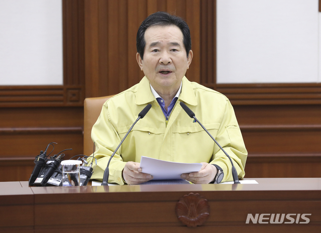 [서울=뉴시스] 최진석 기자 = 정세균 국무총리가 9일 오후 종로구 정부서울청사에서 열린 신종 코로나바이러스 감염증(우한 폐렴) 대응 중앙사고수습본부(중수본) 회의에 참석해 발언하고 있다. 2020.02.09.