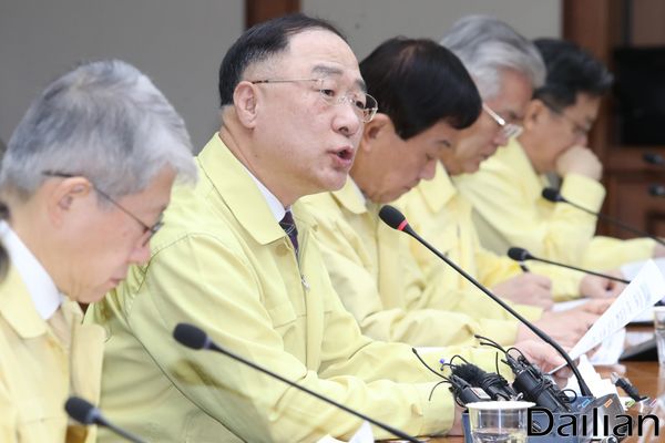 홍남기 경제부총리 겸 기획재정부 장관이 19일 오전 서울 여의도 한국수출입은행 본점에서 열린 제7차 코로나19 대응 경제관계장관회의 겸 제5차 경제활력대책회의에 모두발언을 하고 있다.