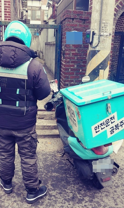 오전 8시40분 출근지난 4일 오전 8시40분, 2~3층짜리 빌라가 빼곡히 들어선 서울 합정동 골목길에 배기량 100㏄짜리 민트색 오토바이 엔진소리가 울렸다. 두꺼운 방한바지와 패딩점퍼를 2겹으로 껴입은 호영씨가 헬멧을 썼다. 서울 체감온도는 영하 5도였다.