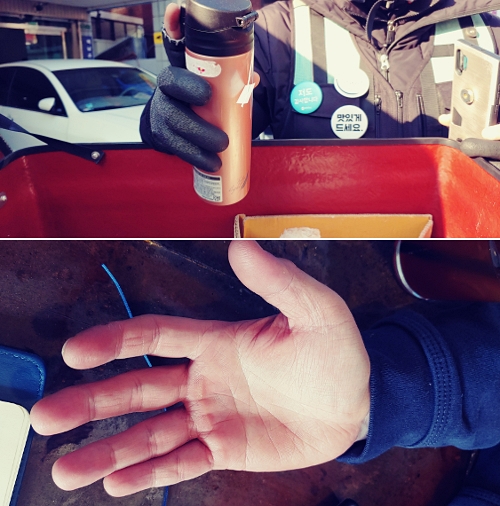 라이더 전투 워밍업오전 9시, 배민 앱이 열리자 콜이 하나둘씩 뜨기 시작했다. 대부분은 커피숍에서 아침용 샌드위치와 커피를 직장으로 주문하는 내용이었다. 라면, 빵, 소시지, 음료수, 기저귀 등 생필품을 마트에서 배달해 달라는 주문도 더러 있었다. 효율적으로 일을 하려면 주소만 봐도 1초 안에 위치와 동선이 머릿속에 그려져야 한다. 휴대전화 화면 위로 라이더 손가락이 바삐 움직인다. 그래서 라이더들 방한장갑은 엄지와 검지 끝부분이 모두 잘려져 있다.