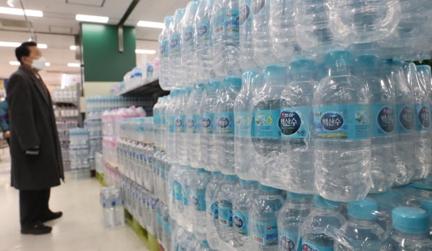 사진=연합뉴스신종 코로나바이러스 감염증(코로나19) 때문에 생수 소비가 급증하고 있다. 코로나19 감염 예방을 위해 사회적 거리두기 시행으로 집에서 보내는 시간이 길어지면서 수요가 폭증한 결과다.