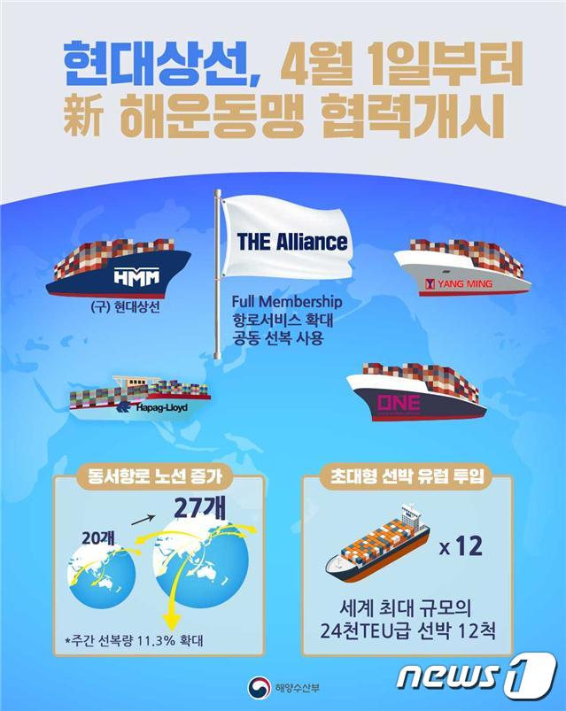 (세종=뉴스1) 백승철 기자 = 우리나라 대표 원양국적선사인 현대상선이 4월 1일부터 해운동맹 '디 얼라이언스’ 체제의 협력을 시작한다. 사명도 '에이치엠엠 주식회사(HMM)'로 변경해 새롭게 출발을 하다.