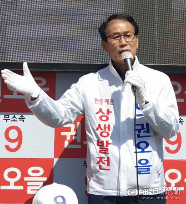 4·15 총선 안동예천에 출마한 권오을 무소속 후보가 10일 안동시 풍산읍에서 자신의 정책을 설명하며 지지를 호소하고 있다.