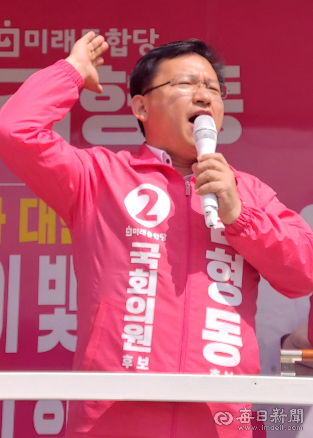 4·15 총선 안동예천에 출마한 미래통합당 김형동 후보가 10일 안동 중앙신시장 유세에서 지지를 호소하고 있다.