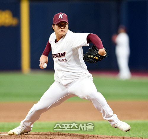키움 투수 조상우가 11일 고척 스카이돔에서 열린 자체 청백전 7회 역투하고 있다.