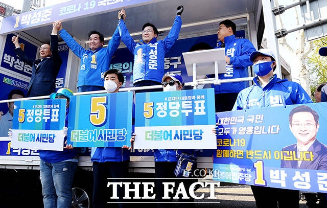 합동유세를 하며 박 후보를 지지하는 이 위원장