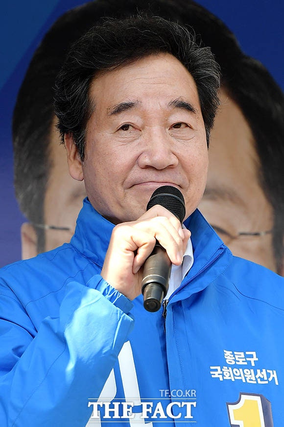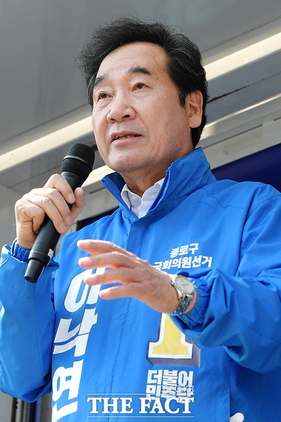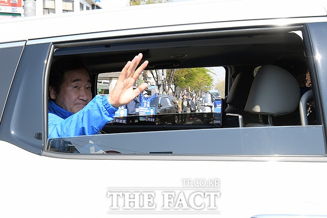 합동유세를 위해 유세차에 오른 이낙연 더불어민주당 공동상임선대위원장 이자 종로구 국회의원 후보