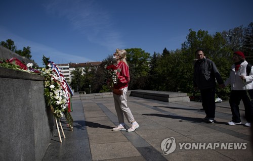 Pople wearing protective face masks gather in front of the Red Army monument during Victory Day celebrations in Sofia, Bulgaria, 09 May 2020. Bulgaria was an ally of Nazi Germany until 1944 but joined the anti-Nazi coalition following the arrival of the Soviet army. Victory Day on 09 May 2020 marked the 75rd anniversary since the capitulation of Nazi Germany in 1945. EPA/VASSIL DONEV