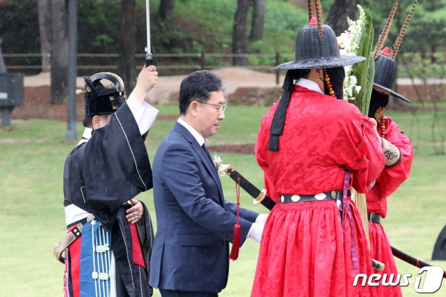 >  (여주=뉴스1) 조태형 기자 = 박양우 문화체육관광부 장관이 15일 오전 경기도 여주시 세종대왕 영릉에서 봉행되는 세종대왕 탄신 623돌 숭모제전에 참석해 헌화하고 있다. 2020.5.15/뉴스1 phototom@news1.kr ▶ 네이버 메인에서 [뉴스1] 구독하기!▶ 뉴스1 바로가기 ▶ 코로나19 뉴스 © 뉴스1코리아( news1.kr), 무단 전재 및 재배포 금지