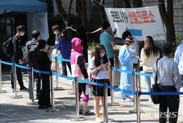 [서울=뉴시스] 박미소 기자 = 서울시가 신종 코로나바이러스 감염증(코로나19) 무증상 감염자로 인한 지역사회 집단감염을 사전에 차단하기 위해 코로나19 선제검사를 본격적으로 추진하기로 한 1일 오전 서울 서초구청 선별진료소 앞에서 시민들이 검사를 받기 위해 줄을 서 있다. 서초구의 경우 관내 영어유치원 24개소의 강사, 차량기사 등 종사자 595명에 대해서 1일부터 10일까지 선제검사를 시행한다. 2020.06.01. misocamera@newsis.com[서울=뉴시스] 하종민 기자 = 서울시내 신종 코로나바이러스 감염증(코로나19) 확진자가 해외입국 후 확진판정을 받은 2명이 발생하며 총 863명을 기록했다. 다만 우려했던 이태원 클럽 및 부천시 쿠팡물류센터, KB생명보험 대리점 등 집단감염 관련 확진자는 늘어나지 않고 있다.