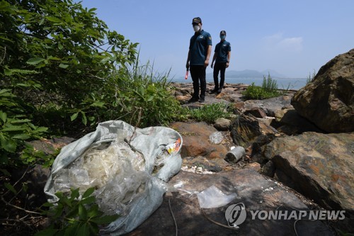 South Korean police officers search for propganda meterial of a North Korean defectors' group on Seongmodo-island in Incheon, South Korea, 16 June 2020. Kim Yo-jong, first vice director of the United Front Department of the Workers' Party of Korea, said on 13 June, its military will be entrusted with the right to take the 'next step' against the South in the latest in a series of threats in anger over anti-Pyongyang leaflets sent across the border by activists. EPA/KIM HEE-CHUL