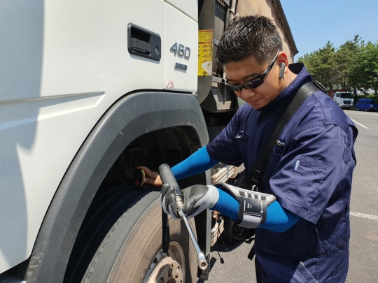 미쉐린코리아 타이어 점검 모습. [미쉐린코리아 제공][헤럴드경제 정찬수 기자] 미쉐린코리아가 여름철을 맞아 트럭·버스 타이어 관리의 중요성을 강조한 ‘슬기로운 타이어 관리 생활’ 이벤트를 진행한다고 24일 밝혔다.