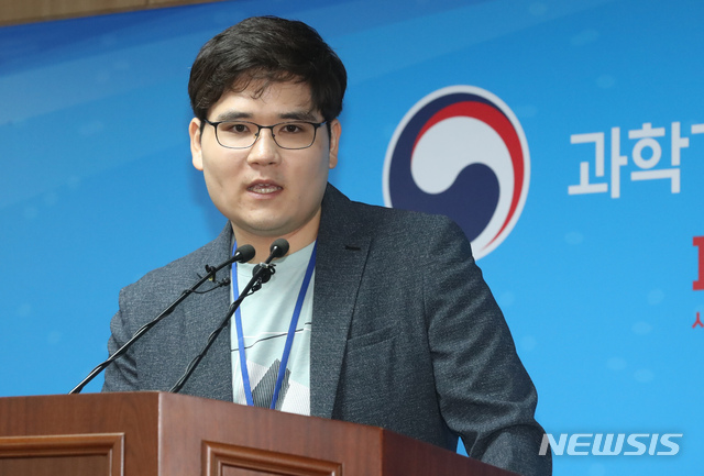 [세종=뉴시스]강종민 기자 = 김종구 기초과학연구원(IBS) 화학반응연구단 선임연구원이 지난 24일 정부세종청사에서 원자가 결합해 분자가 탄생하는 과정을 실시간으로 관찰하는데 성공했다고 밝히고 있다. 2020.06.25.