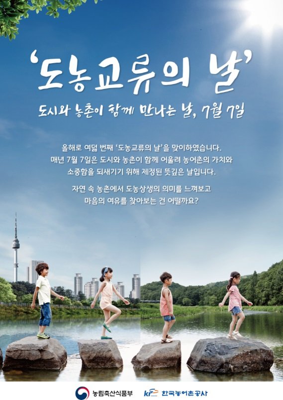 [파이낸셜뉴스] 농림축산식품부는 오는 7일 서울 더 플라자 호텔에서 ‘제8회 도농교류의 날 기념행사’를 개최한다고 6일 밝혔다. 도농교류의 날은 도시와 농촌간 교류 촉진을 위해 2013년 지정한 법정 기념일이다.