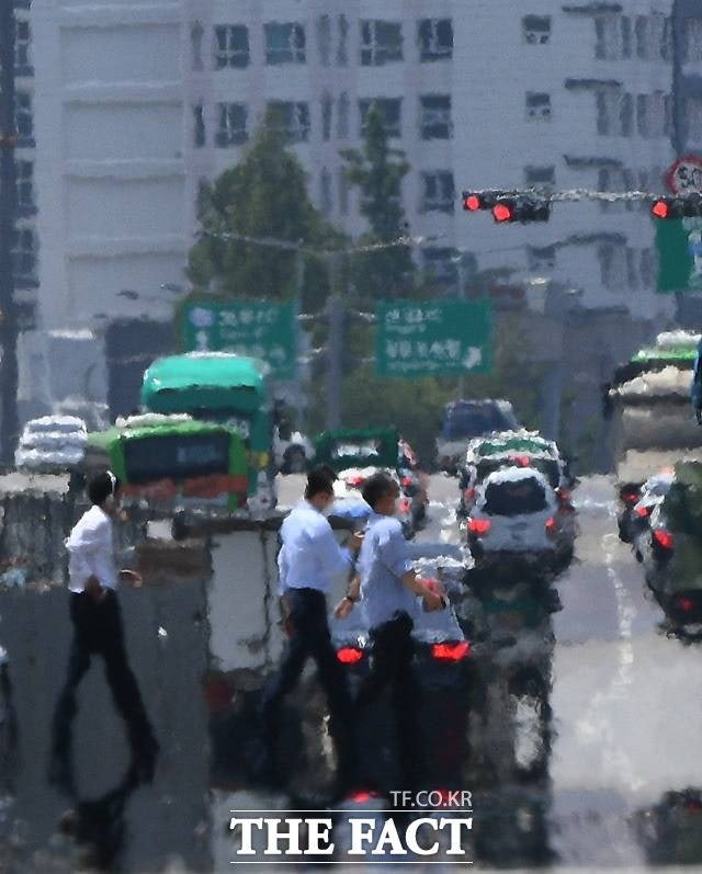 20일은 전국이 대체로 맑고 낮 기온은 33도 이상 오르면서 덥겠다. 사진은 지난 9일 서울 영등포구 여의도환승센터 인근의 도로에서 아지랑이가 피어오르는 모습. /더팩트 DB미세먼지 농도 경기남부·충북·부산 '나쁨'[더팩트ㅣ장병문 기자] 목요일인 20일은 전국 대부분 지역이 강한 햇빛과 높은 습도로 매우 덥겠고 열대야도 이어지겠다.