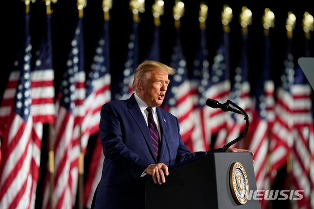 >  [워싱턴=AP/뉴시스] 도널드 트럼프 미국 대통령이 공화당 전당대회 마지막 날인 27일(현지시간) 워싱턴 백악관 사우스론에서 많은 참석자들 앞에서 공화당 대선후보 수락연설을 하고 있다. 이번 행사는 정치에 연방건물을 이용했다는 논란과 함께 대규모 집회를 금지한 워싱턴DC 시정부의 방역지침을 어겼다는 비판을 받고 있다. 020.08.28 [사진 영상 제보받습니다] 공감언론 뉴시스가 독자 여러분의 소중한 제보를 기다립니다. 뉴스 가치나 화제성이 있다고 판단되는 사진 또는 영상을 뉴시스 사진영상부(n-photo@newsis.com)로 보내주시면 적극 반영하겠습니다. <ⓒ 공감언론 뉴시스통신사. 무단전재-재배포 금지>