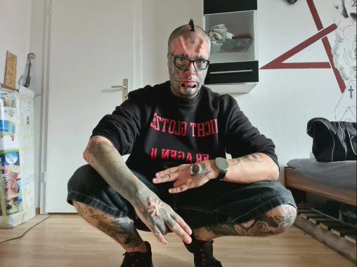 그는 지난 2007년부터 몸에 수십개의 문신과 피어싱을 시작으로 이마와 팔뚝, 손등에 보형물을 삽입했다. 손목에는 전자결제칩을 심기도 했다.