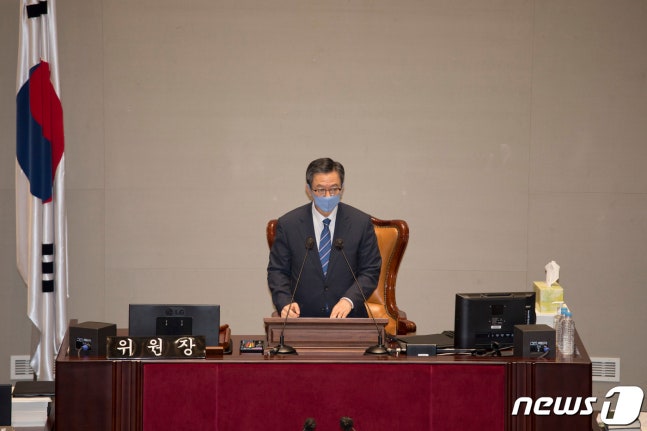 (서울=뉴스1) 신웅수 기자 = 정성호 예산결산특별위원회 위원장이 31일 오전 서울 여의도 국회에서 열린 예결위 전체회의에서 개회를 선언하고 있다. 2020.8.31/뉴스1