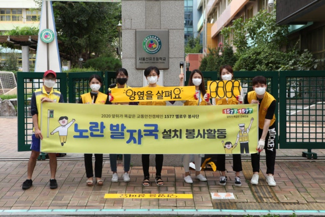 코리아드라이브 임직원들로 구성된 '1577 옐로우 봉사단'은 서울시 영등포구 내 어린이보호구역과 어린이집 인근 횡단보도에서 초등학생들이 횡단보도 이용시 안전하게 대기할 수 있도록 유도하는 '노란발자국' 설치 봉사활동을 진행했다.